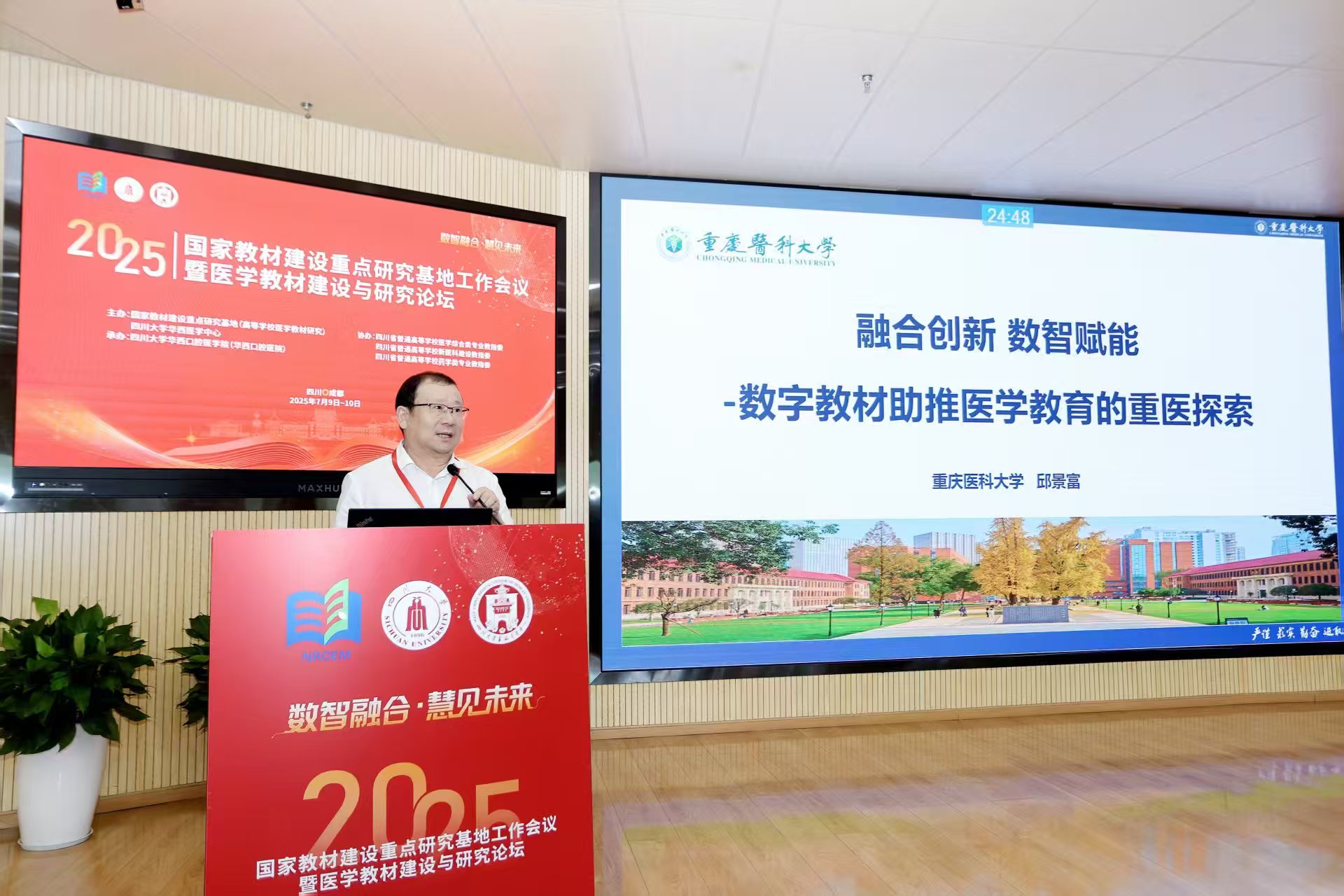7月9日至10日,“2025年国家教材建设重点研究基地(医学)工作会议暨医学教材建设与研究论坛”在蓉举行。我校副校长邱景富、教务处副处长叶琳受邀参会。