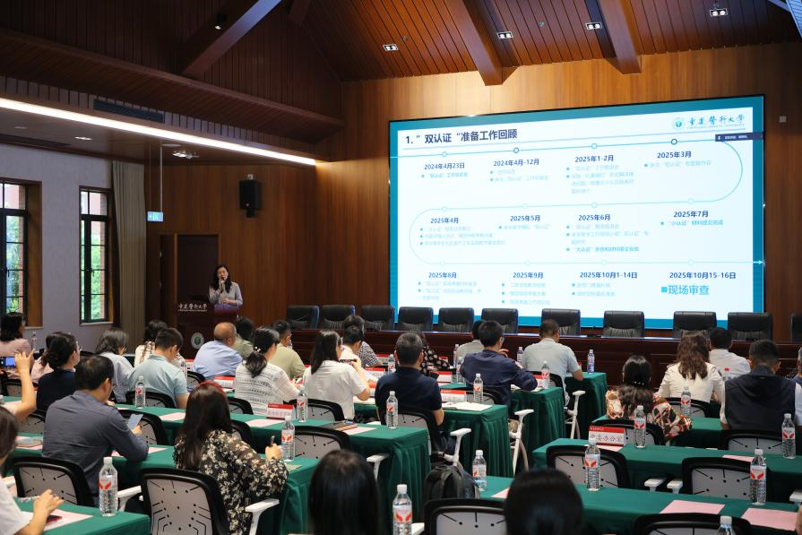 王羽就来华留学“双认证”现场审查工作进行专题培训,她回顾了“双认证”准备工作历程,通报了相关问题自评自改情况,明确了本次现场审查工作的具体安排与相关要求。