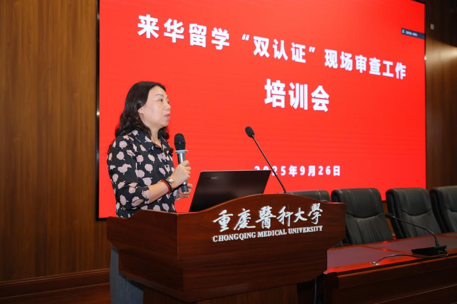 9月26日,来华留学“双认证”现场审查工作培训会在袁家岗校区南楼B322会议室举行。会议由国际教育学院院长王羽主持。副校长刘恩梅出席会议。