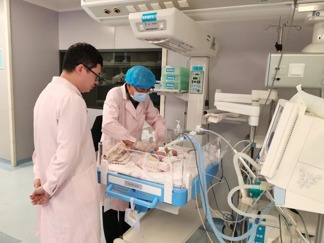 婴儿出生时自主呼吸弱、反应差,不久即开始出现呼吸急促、呻吟,在产房医护团队的护送下紧急转至新生儿科。新生儿科医护团队立即实施抢救,整个过程紧张有序,确保婴儿生命体征稳定。婴儿的肺发育不成熟,不能自主呼吸,出现呼吸窘迫综合征,儿科副主任(主持工作)韩周玻及副主任肖其海当机立断,运用Lisa技术为患儿滴入肺表面活性物质,采用呼吸机辅助通气,让婴儿顺利通过了呼吸关。新生儿的血管细如发丝,穿刺置管极具挑战,专科护士帅宇及罗欢成功为婴儿经外周置入静脉中心导管,为其提供了一条安全、有效的输液和给药通道。同时,新生儿科团队通过微量喂养的方式,逐步提升婴儿的奶液喂养量,最终实现了全肠道喂养。经过22天的精心救治,婴儿各项生命体征平稳,体重也增长到1.88kg,各脏器发育良好,最终顺利出院。
