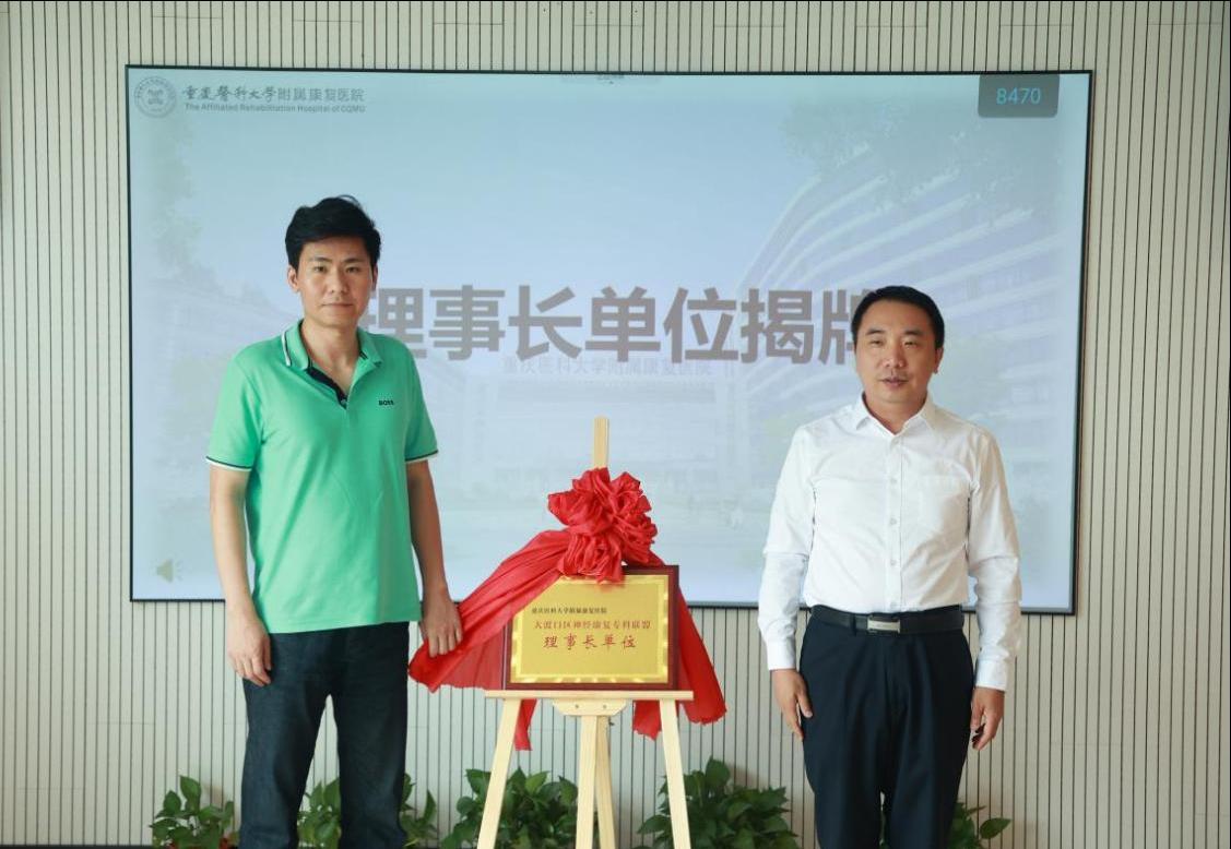 随后,程鑫、王振宇共同为康复医院“神经康复专科联盟理事长单位”揭牌,重钢总医院、大渡口区人民医院作为“副理事长单位”与其他“成员单位”同步授牌,大渡口区神经康复专科联盟组织架构正式确立,区域神经康复协作网络进入实体化运行阶段。