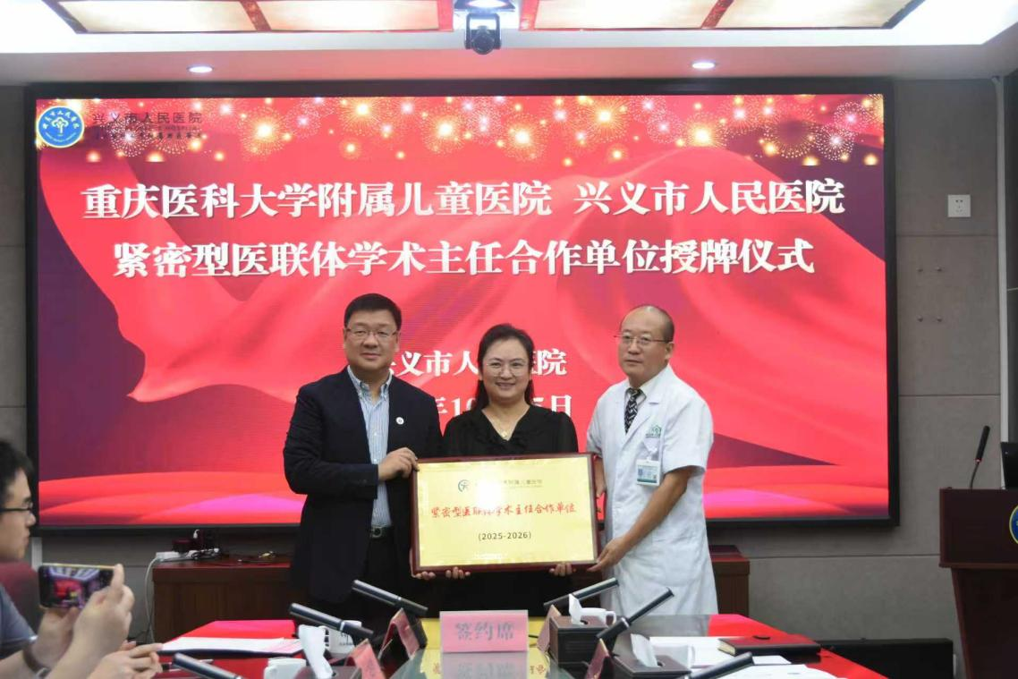 王佚与陈春签署了《安博平台附属儿童医院与兴义市人民医院医联体学术主任合作协议》,并与王忠安进行了“紧密型医联体学术主任合作单位”牌匾的授接。
