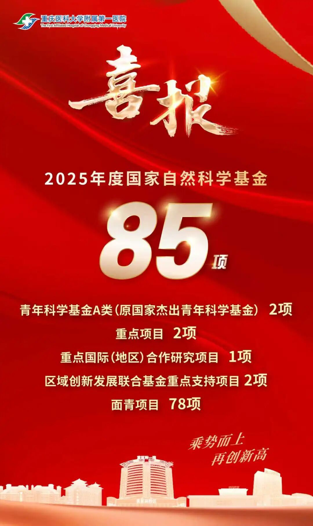 近日,附属第一医院眼科杨培增教授、肝胆外科吴忠均教授同时获批2025年度国家自然科学基金区域创新发展联合基金重点支持项目。医院2025年已累计获批国家自然科学基金项目85项,其中高显示度项目7项,创历史新高。