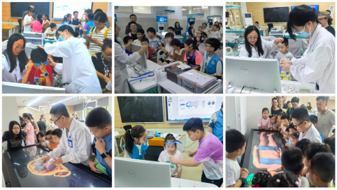 活动期间,在家长的陪伴下“医小苗”们逐步了解了数字解剖系统、虚拟解剖台,认识到了传统中医的神奇之处,还学习到了果汁和葡萄酒的饮用安全知识,体验了如何使用显微镜寻找和识别细菌,进行了AI视频互动体验。在亲子互动的过程中“医小苗”家庭全神贯注的投入,默契配合,踊跃提问,实验室内气氛热烈。