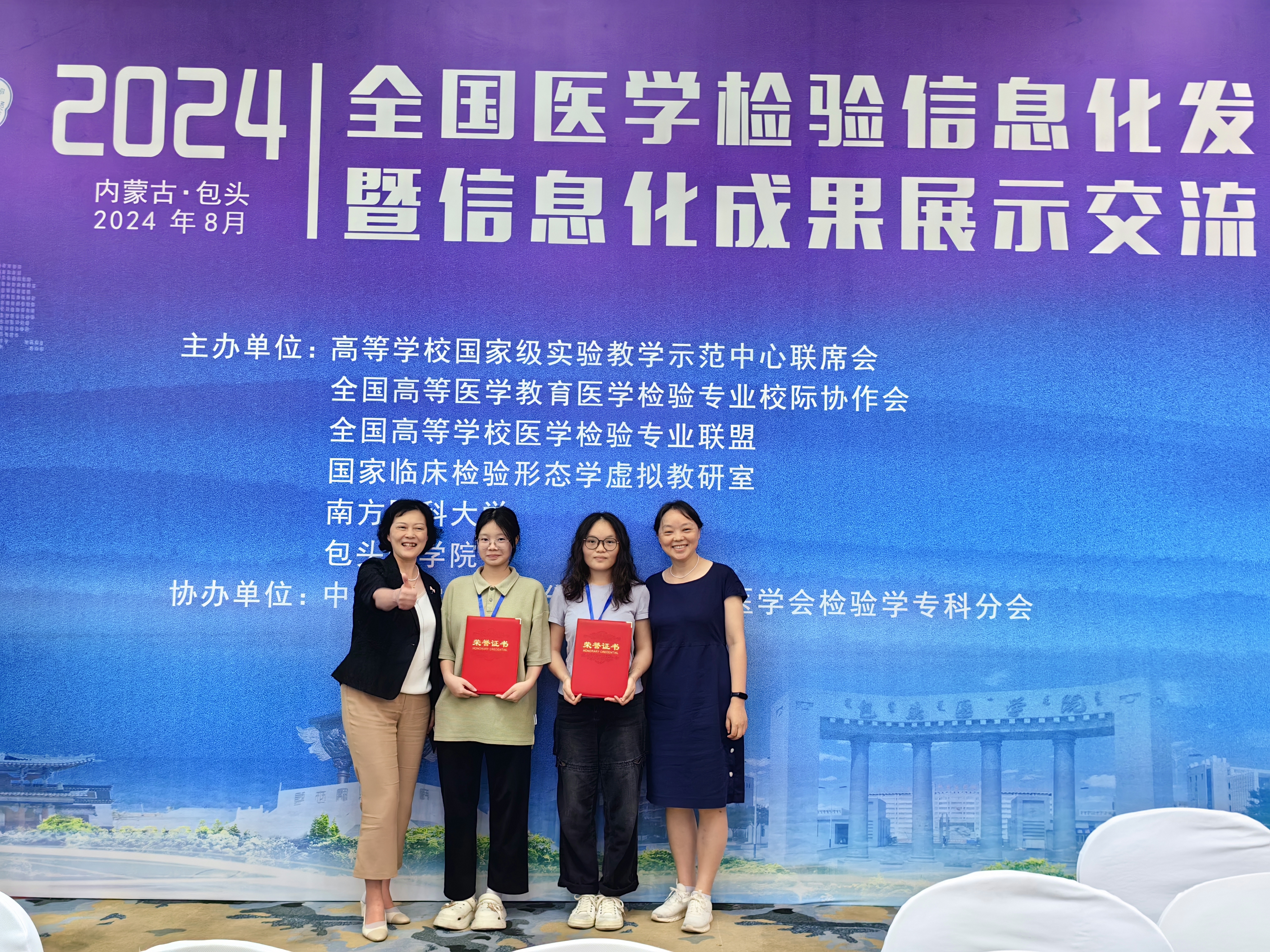 8月16日至18日,第八届全国医学检验技术专业大学生形态学大赛在内蒙古包头举行。作为全国医学检验领域重要赛事,大赛吸引了全国近70所高校200多名优秀学生参赛。经过初赛、决赛的激烈角逐,我校检验医学院2021级医学检验技术专业杜勤勤、韦秋雨两位同学脱颖而出,均获一等奖!