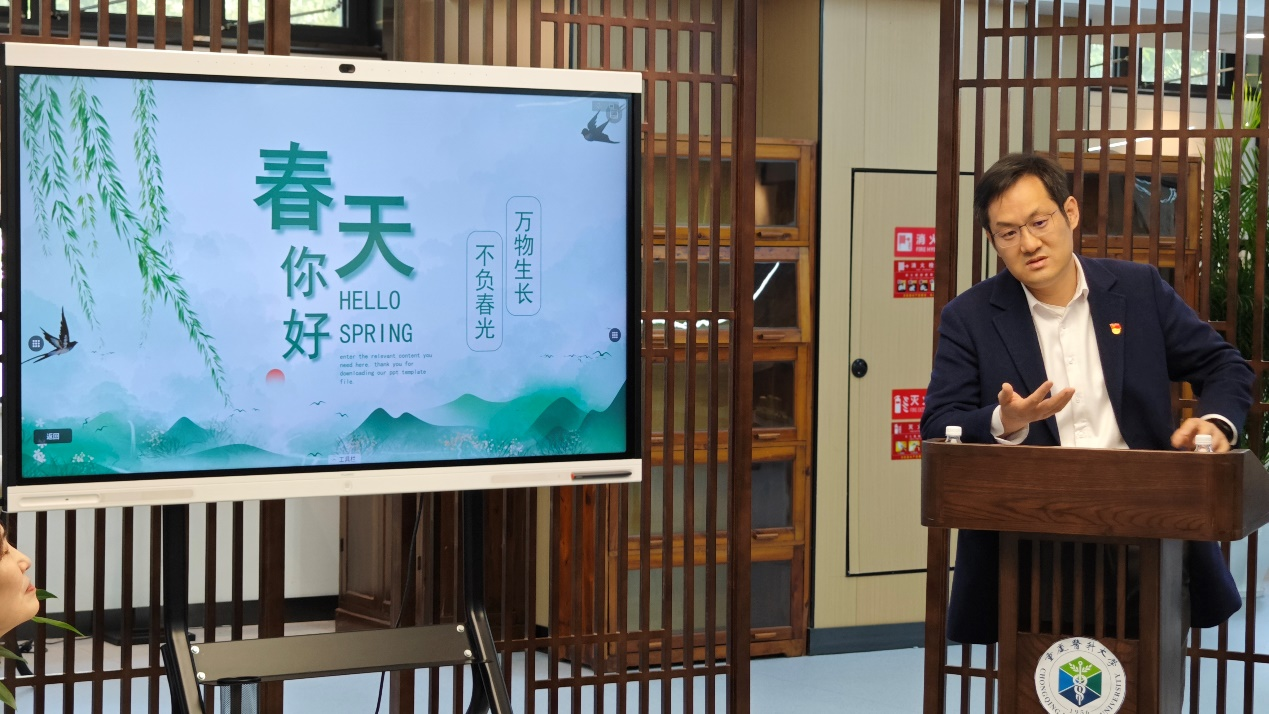周建荣介绍了2025年春季学期的重点工作,一是进一步加强党支部和工会工作,保障意识形态和消防安全;二是建设特色阅读专区,升级改造视觉标识系统,创新开展档案服务;三是优化查收查引系统,构建AI医学科研文献服务平台;四是加强学科服务,助力安博平台“双一流”建设;五是持续推动资源建设,智慧化构建数字资源体系;六是深化文化育人工作,打造精品讲堂,做好大众科普传播。