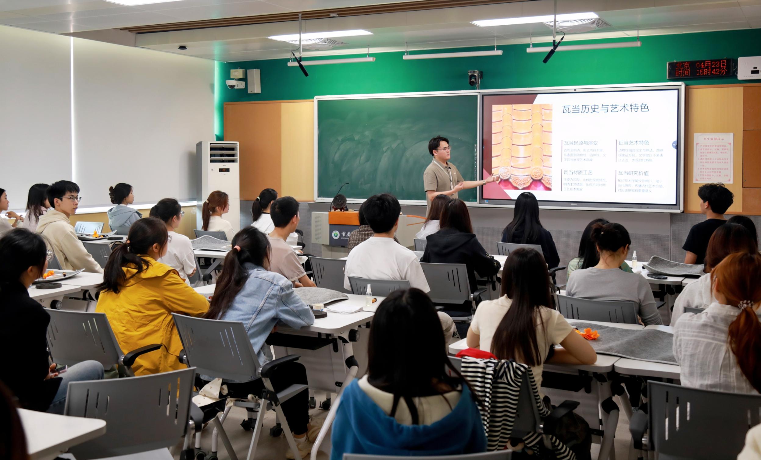 课堂上,重庆中国三峡博物馆公共教育与服务部教育员吴聖聪向同学们展示了瓦当的纹样种类,现场演示了拓片的制作步骤,详细介绍了瓦当的历史背景、艺术特点以及实用价值。