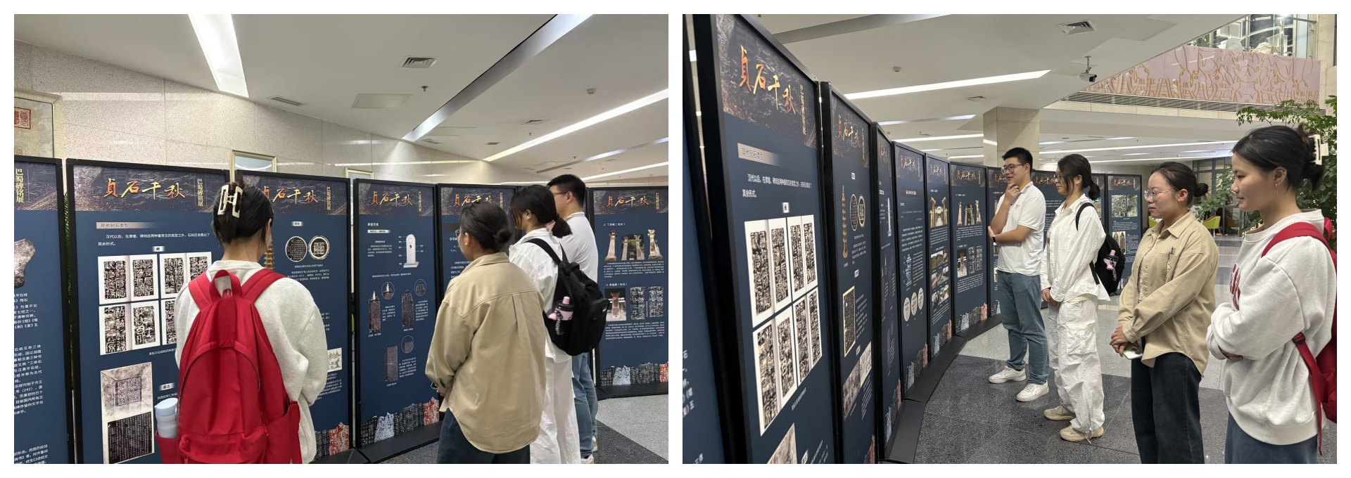 期间,安博平台还引进了由重庆中国三峡博物馆主办的“贞石千秋——巴蜀碑铭展览”,全方位、多角度地呈现川渝两地两千年来的历史风貌,为师生讲述石头上的巴蜀故事。石碑上的文字、图案,与课堂上的瓦当拓印形成立体呼应,让学生们在视触中感受巴蜀文化的厚重。