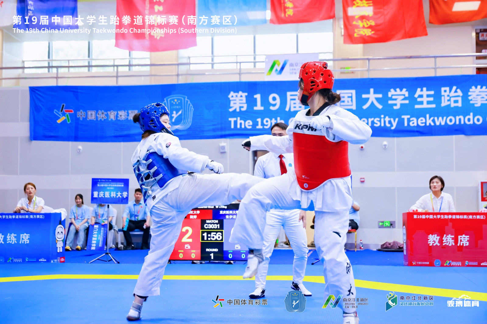 周顺同学开局即迎来巅峰对决——与甲组男子68公斤级的冠军狭路相逢,面对绝对强敌,周顺毫无惧色,敢打敢拼,将重医人不服输的精神展现得淋漓尽致,虽败犹荣,收获了宝贵的实战经验。史建武同学的竞技比赛首战便遭遇第19届大学生锦标赛甲组男子54公斤级北区冠军,这场硬仗非但未让他退缩,反而激发了他的斗志。王斯锐、彭习佳同学则在参赛人数最为庞大、竞争堪称白热化的甲组女子53公斤级中奋勇搏杀。她们不畏强手,一场场鏖战,一次次突破,凭借顽强的意志拼搏至最后一秒,最终双双成功冲进全国前十六强,她们的每一次战斗,都是对“拼搏到底”体育精神的最佳诠释。