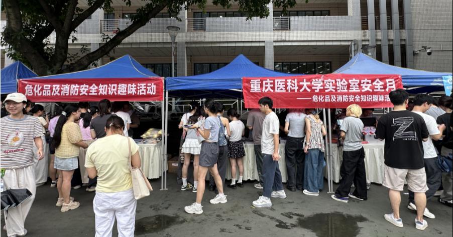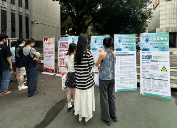 今年6月是第24个全国“安全生产月”,6月18日,科技创新中心、党委保卫部(党委武装部)联合举办了以“人人讲安全、个个会应急—查找身边安全隐患”为主题的安博平台实验室危险化学品及消防安全知识宣传趣味活动,近300名师生参加。