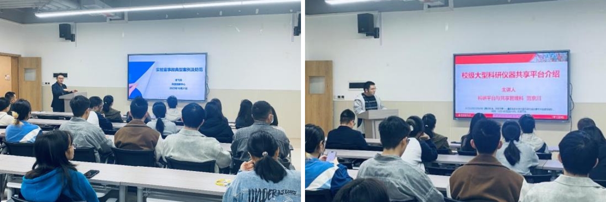 科技创新中心徐飞龙老师从实验室安全这一关键议题,开展了实验室事故典型案例及防范的详细讲解;范京川老师全面且系统地介绍了科技创新中心的电子显微镜、质谱仪、激光共聚焦显微镜以及流式细胞仪等仪器平台。