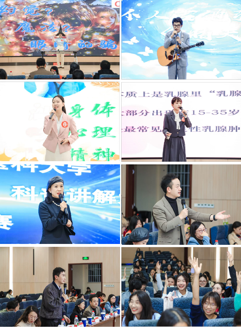 决赛设“我秀科普”个人展示与“我讲科普”自主命题讲解两个环节。在个人展示中,选手们结合自身科普实践经历,以魔术、快板、吉他弹唱等丰富形式,展现对科普事业的理解与热情,现场气氛活跃。在自主命题讲解环节,选手围绕所选医学主题,在四分钟内进行深入浅出的阐释,将专业医学知识转化为通俗易懂的科普内容,体现出良好的科学素养与表达能力。评委从内容科学性、表达通俗性、形式创新性等维度进行综合评分,并作现场点评。比赛还设置了互动答题环节,现场观众踊跃参与,大家在轻松的氛围中不仅巩固了科普知识,还增强了科普传播的实效性。