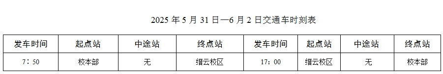 1、5月31日—6月2日发车时间(见附表)。