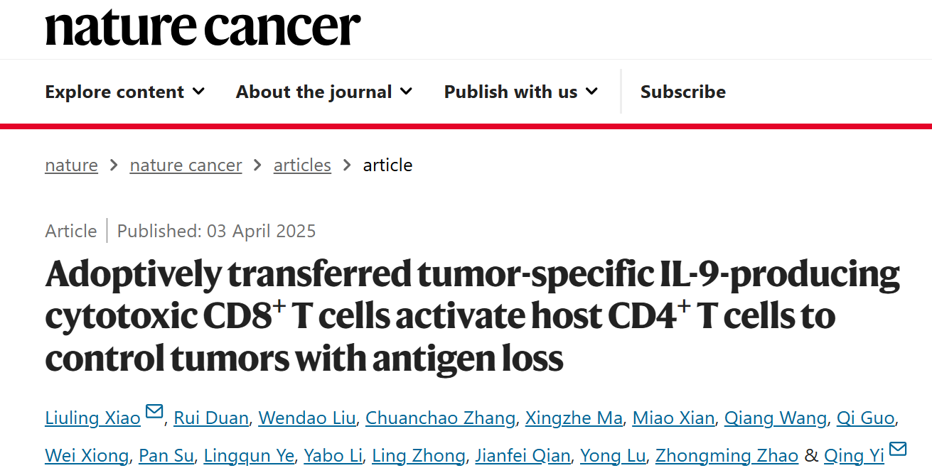 近日,来自我校的肖柳玲博士联合康奈尔医学院易庆团队在Nature cancer期刊上发表题为Adoptively transferred tumor-specific IL-9-producing cytotoxic CD8 T cells activate host CD4 T cells to control tumors with antigen loss的研究,为通过免疫疗法抑制肿瘤细胞的复发提供了全新思路。该团队发现,CD8+T细胞中一个能够分泌白细胞介素9的细胞亚群,即Tc9细胞,肿瘤浸润后能分泌高水平的IL-24,这吸引了树突状细胞(DCs),特别是常规2型DC(cDC2),以激活宿主效应CD4 T细胞并控制小鼠肿瘤模型中ALV肿瘤的生长。