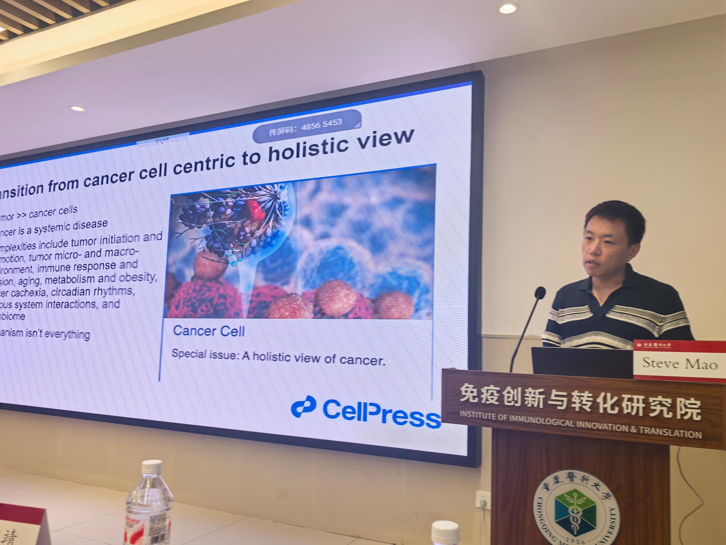 Steve Mao博士带来了题为“Cancer Cell:与癌症研究和临床肿瘤学界共同前行”(Cancer Cell: Advancing with the cancer research and clinical oncology community)的精彩报告。Mao博士从顶级期刊的视角切入,深入探讨了癌症研究与临床肿瘤学的未来发展路径。他分享了Cancer Cell在拓展研究范畴、优化审稿流程、促进跨学科协作方面的努力,致力于弥合基础研究与临床应用之间的鸿沟。未来,期刊将继续发挥其影响力,推动兼具深刻生物学洞见和显著临床价值的研究成果发表,以“架桥者”的使命,成为精准肿瘤学时代连接科研与临床的关键枢纽。